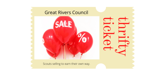 Thrifty Tickets are coupon discount cards created by the Great Rivers Council in partnership with local retailers. Each card is sold to customers for a face value of $10.00 and provides several discounts and one-time use coupons to local area business. For each Thrifty Ticket sold, a profit of $6.50 is earned. Thrifty Ticket sales occur from mid February to mid April.
