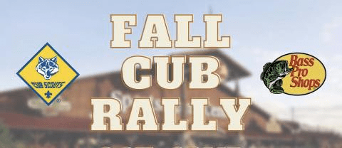 Fall Cub Rally is a council event held outside of the Columbia Bass Pro Shop store. A two hour rotation, that the scout must preregister for, throughout the afternoon often includes archery, bb guns, fishing, leatherwork, woodworking, and water bottle rockets.